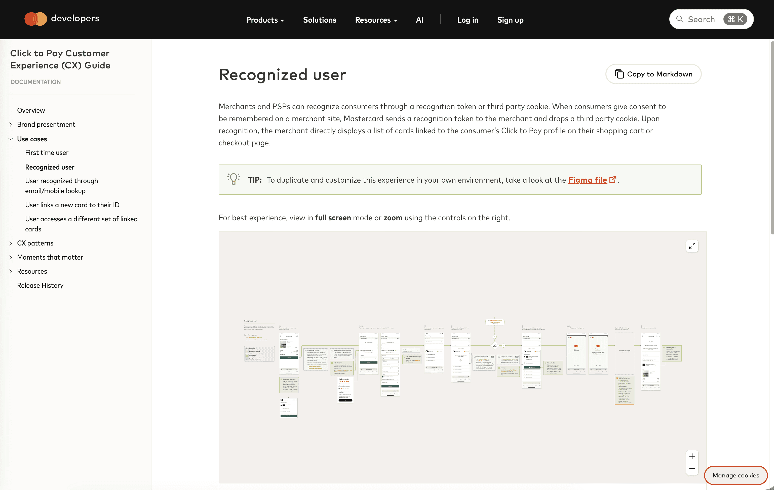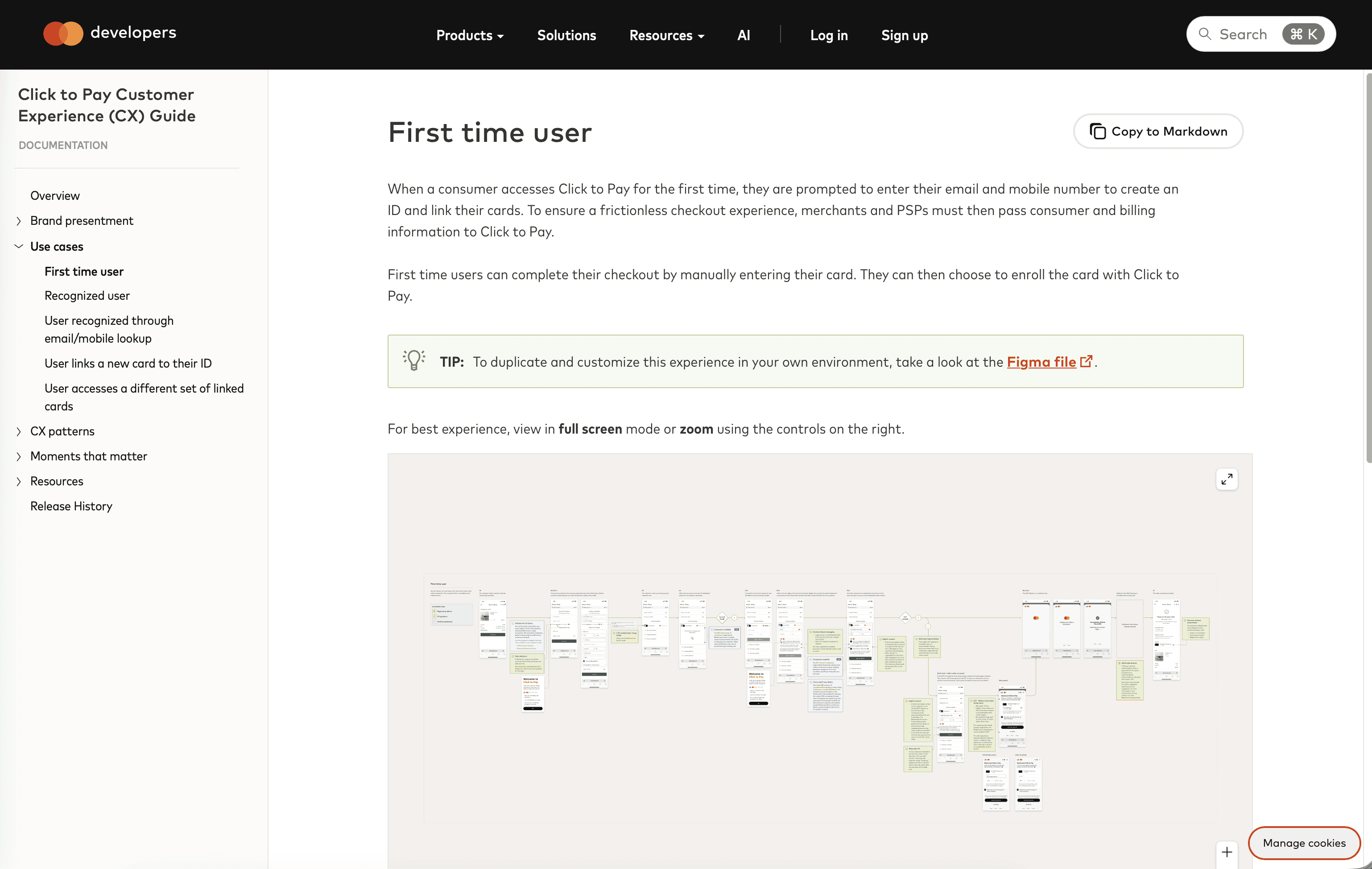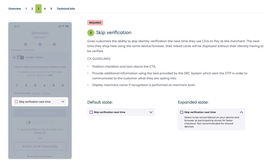 These guides made go-to market easier than ever for our partners when implementing our products into their ecosystem. Below is a high-level view of what a CX Guide for our Click to Pay (C2P) offering: