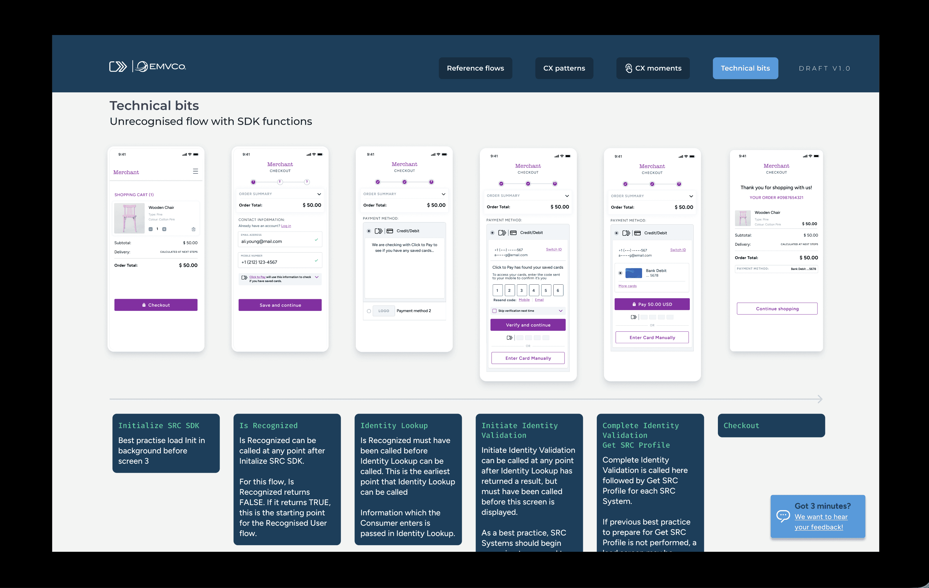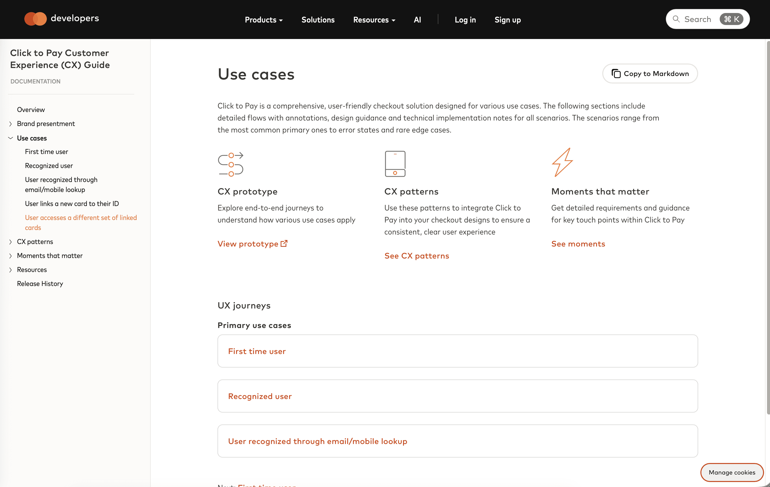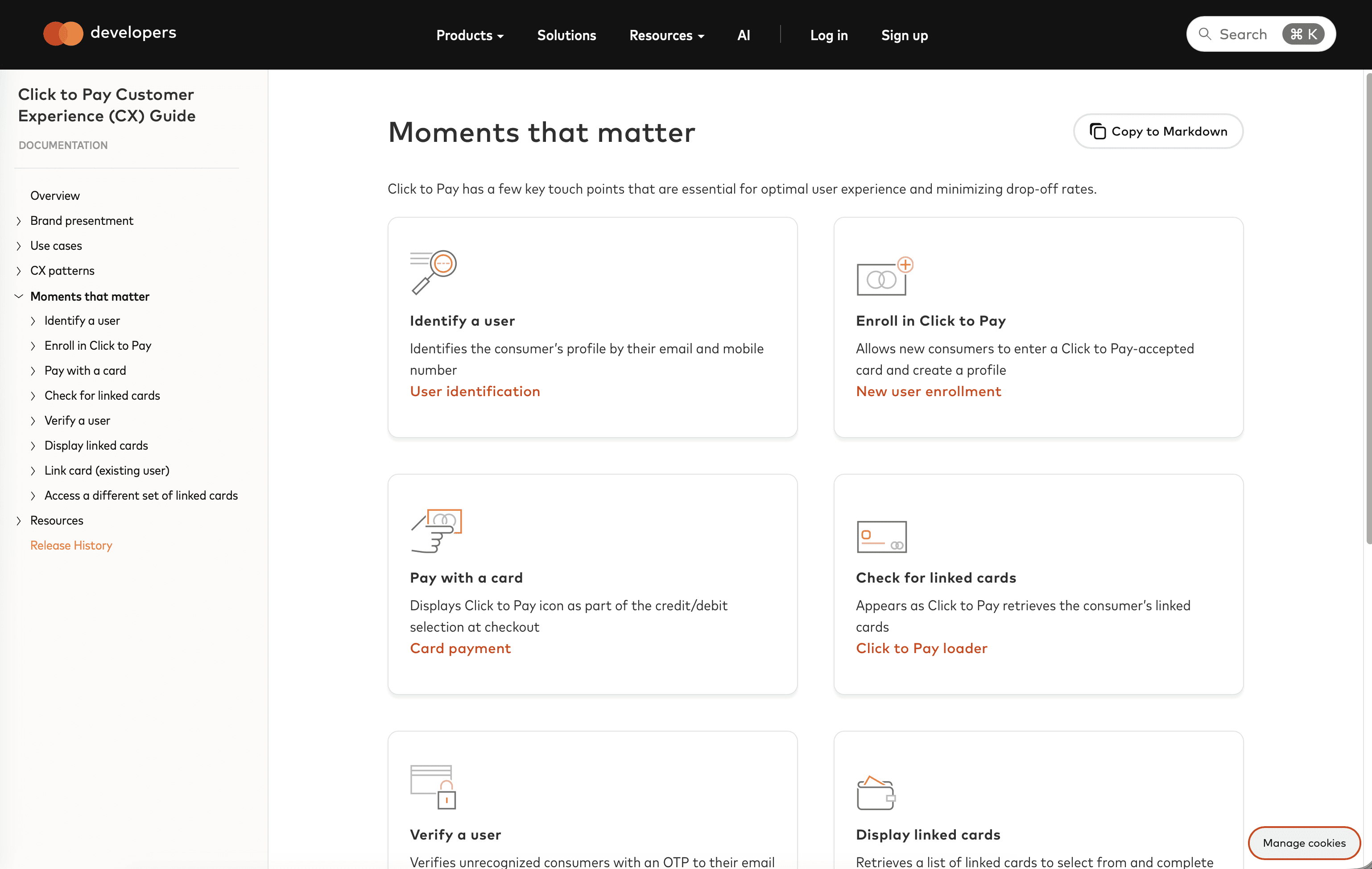 These guides made go-to market easier than ever for our partners when implementing our products into their ecosystem. Below is a high-level view of what a CX Guide for our Click to Pay (C2P) offering: