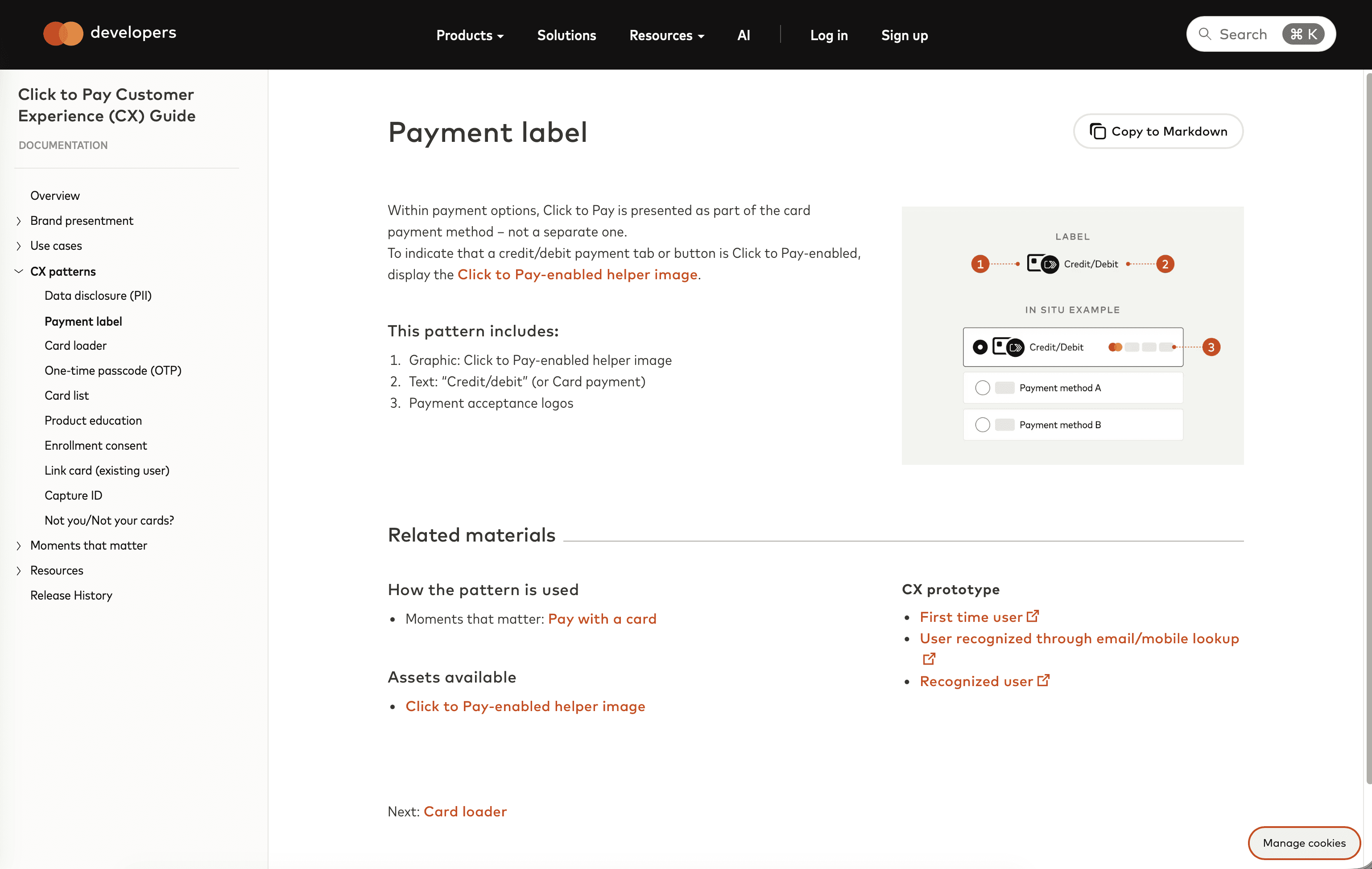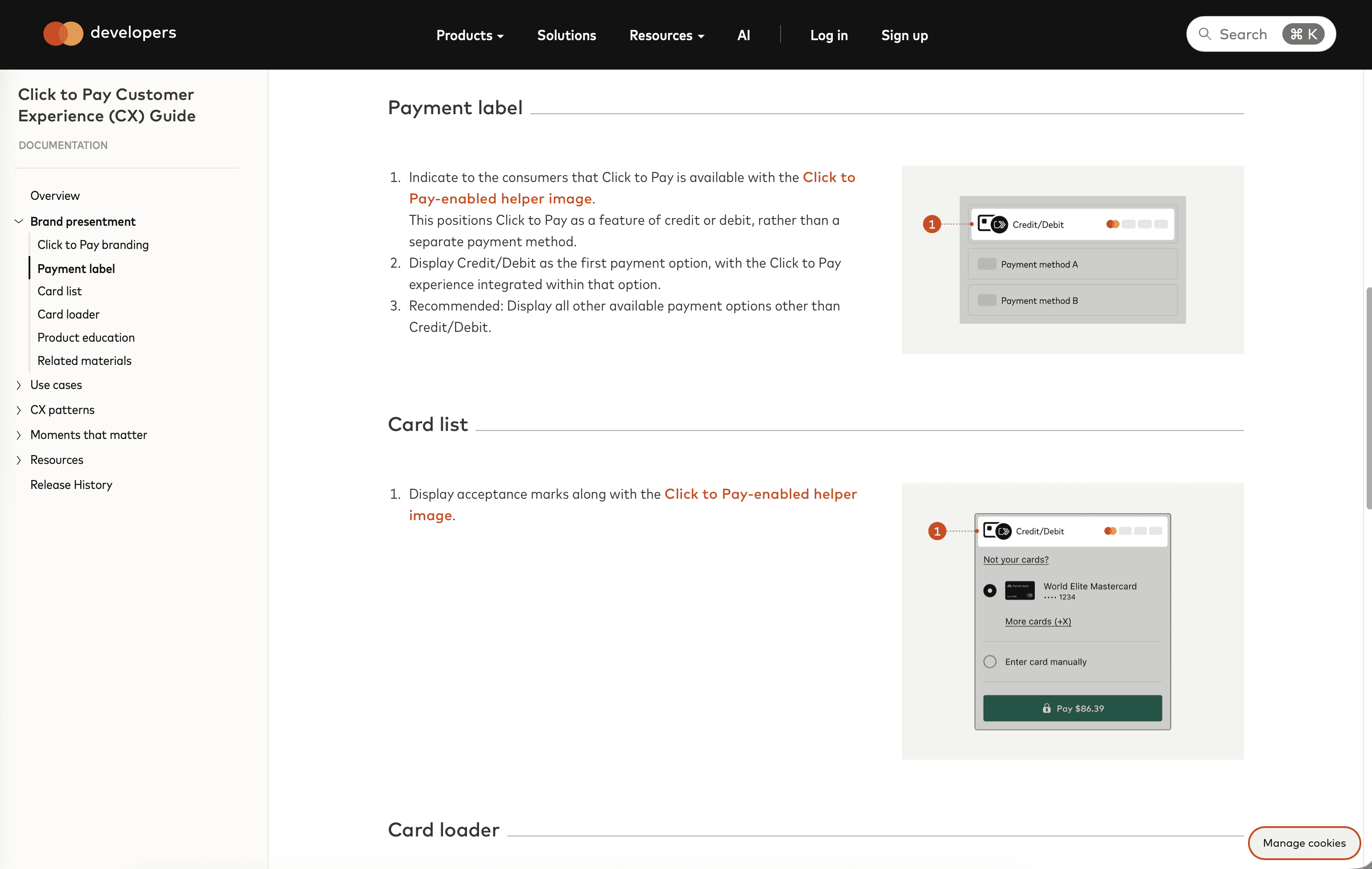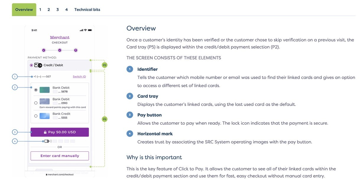 Any of our design assets, technical documentation, other resources are provided if our partners want to do a deeper dive on how to implement Click to Pay
