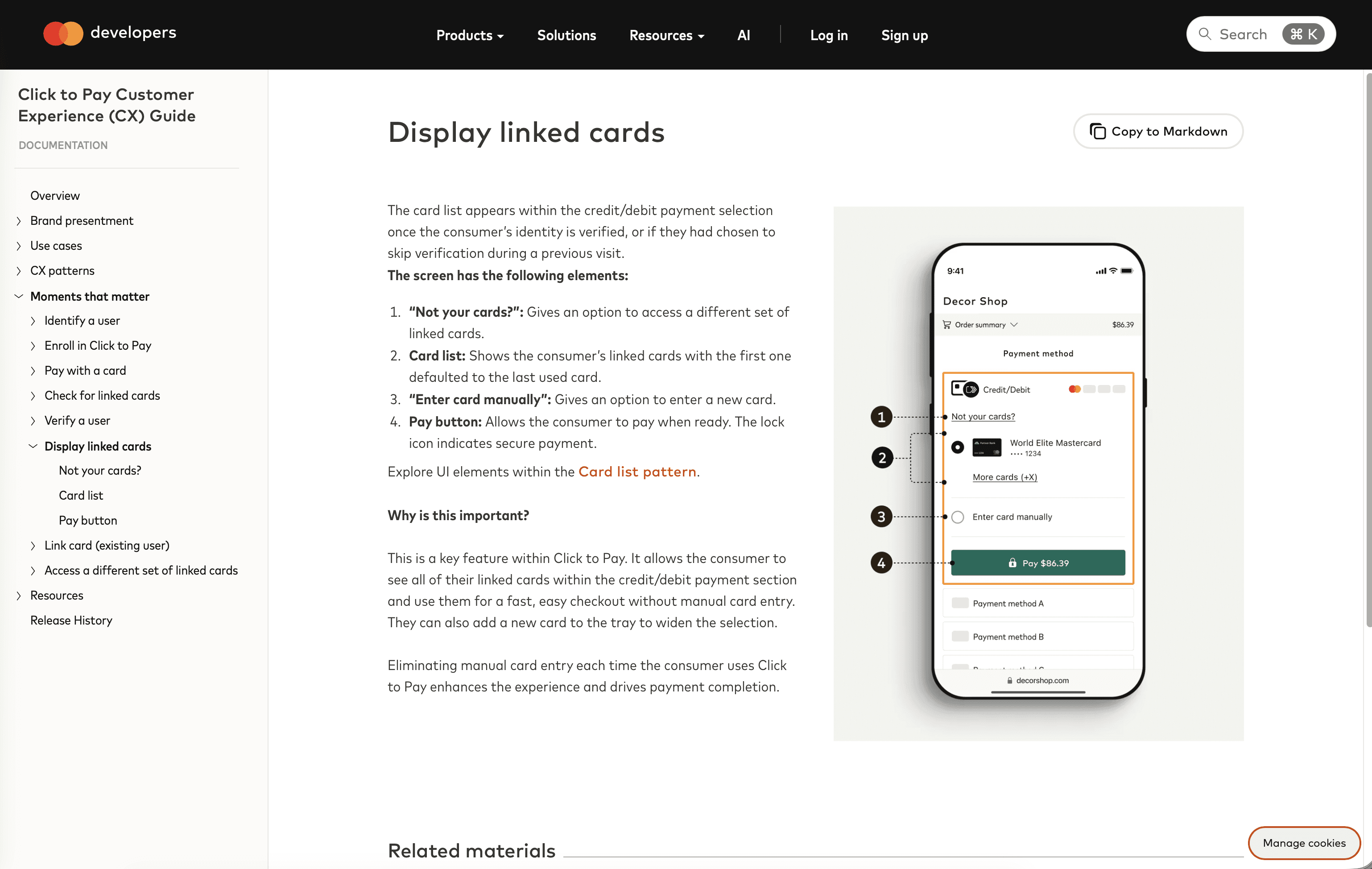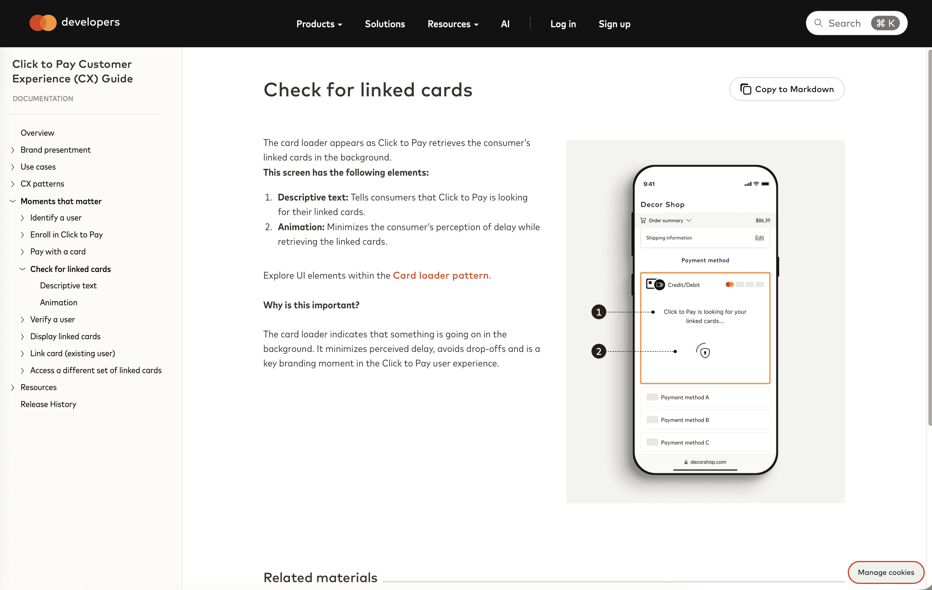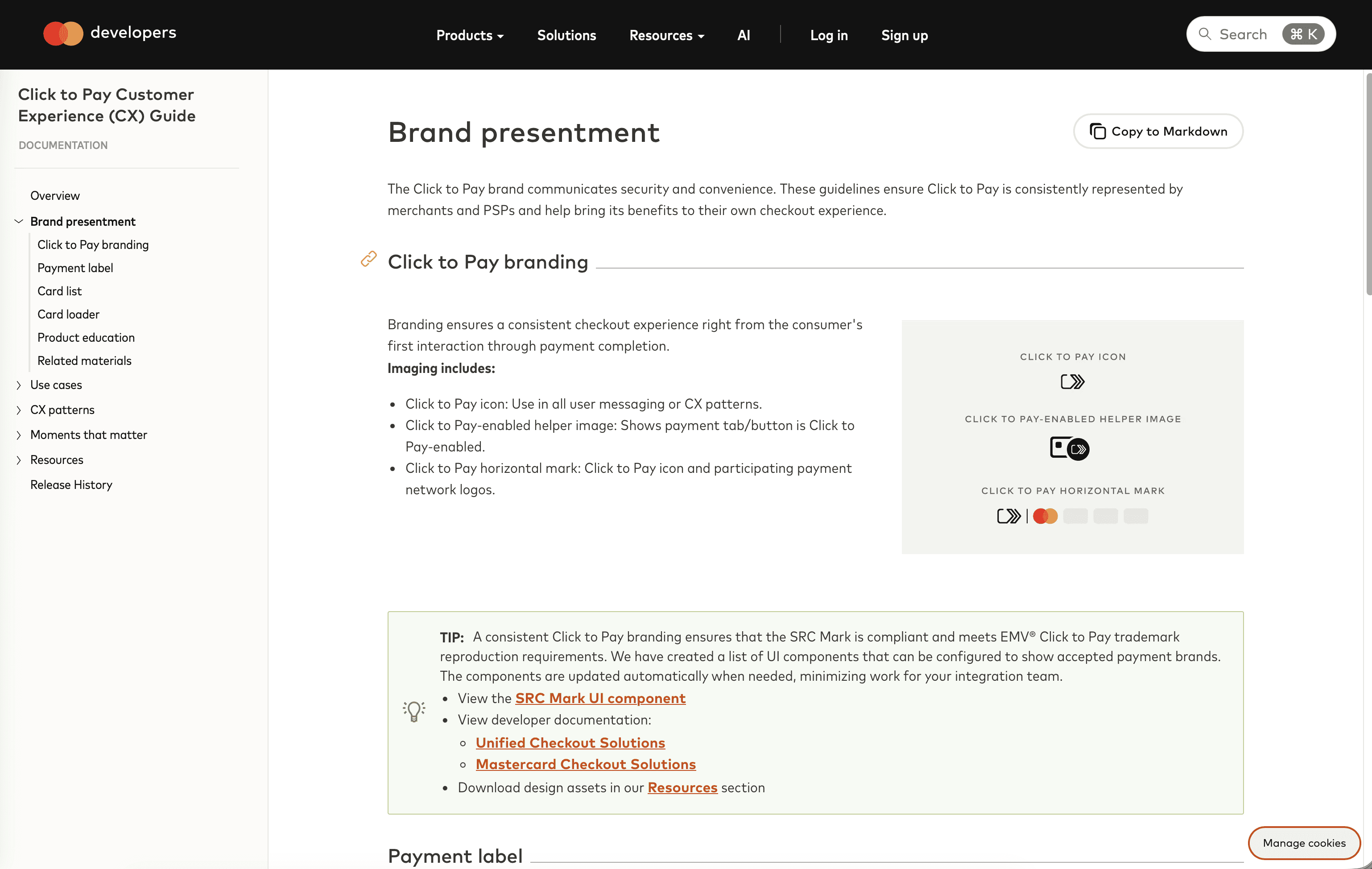 Any of our design assets, technical documentation, other resources are provided if our partners want to do a deeper dive on how to implement Click to Pay