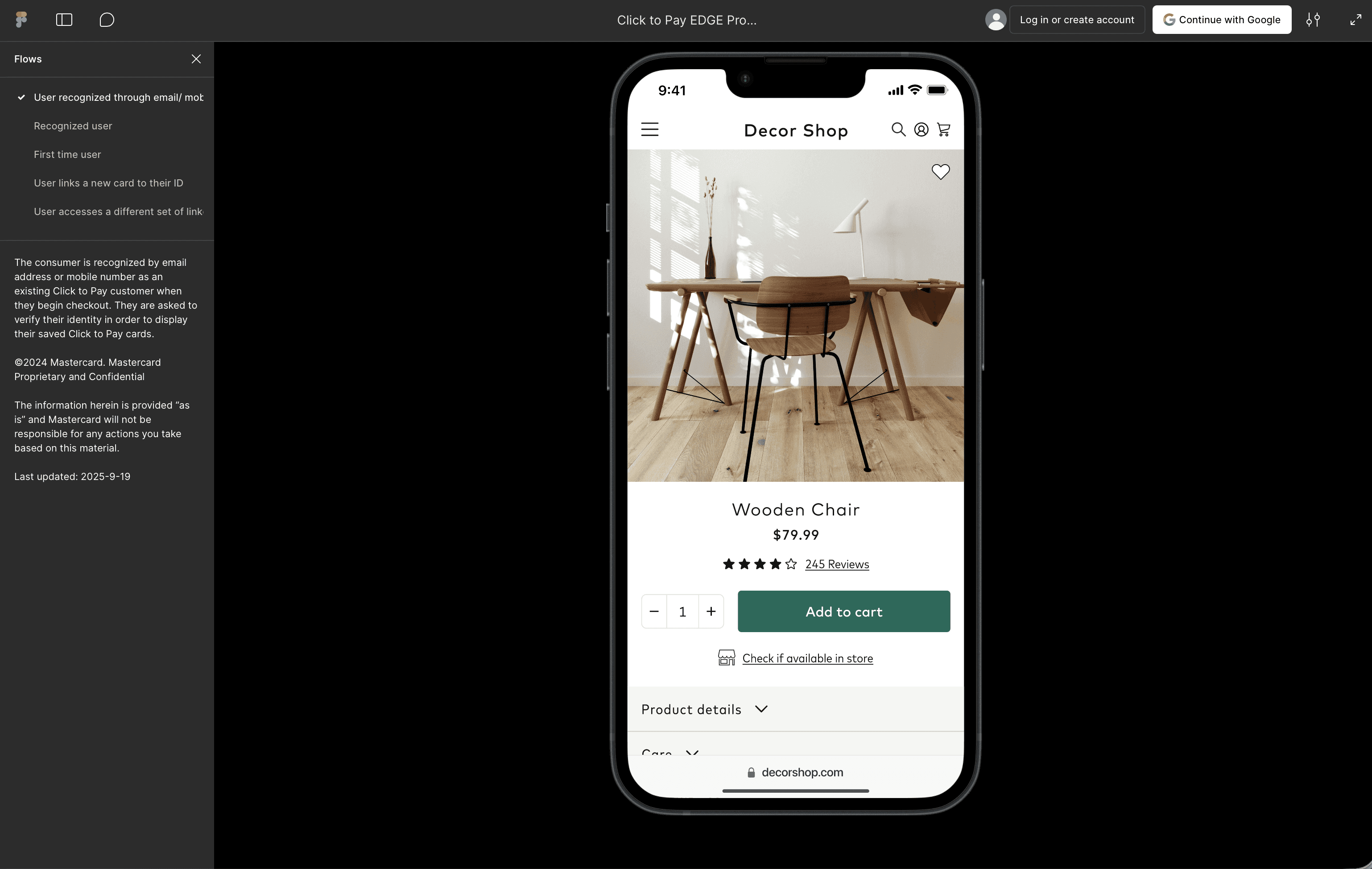 I created the Figma prototypes to demonstrate how C2P would feel in a typical checkout environment
