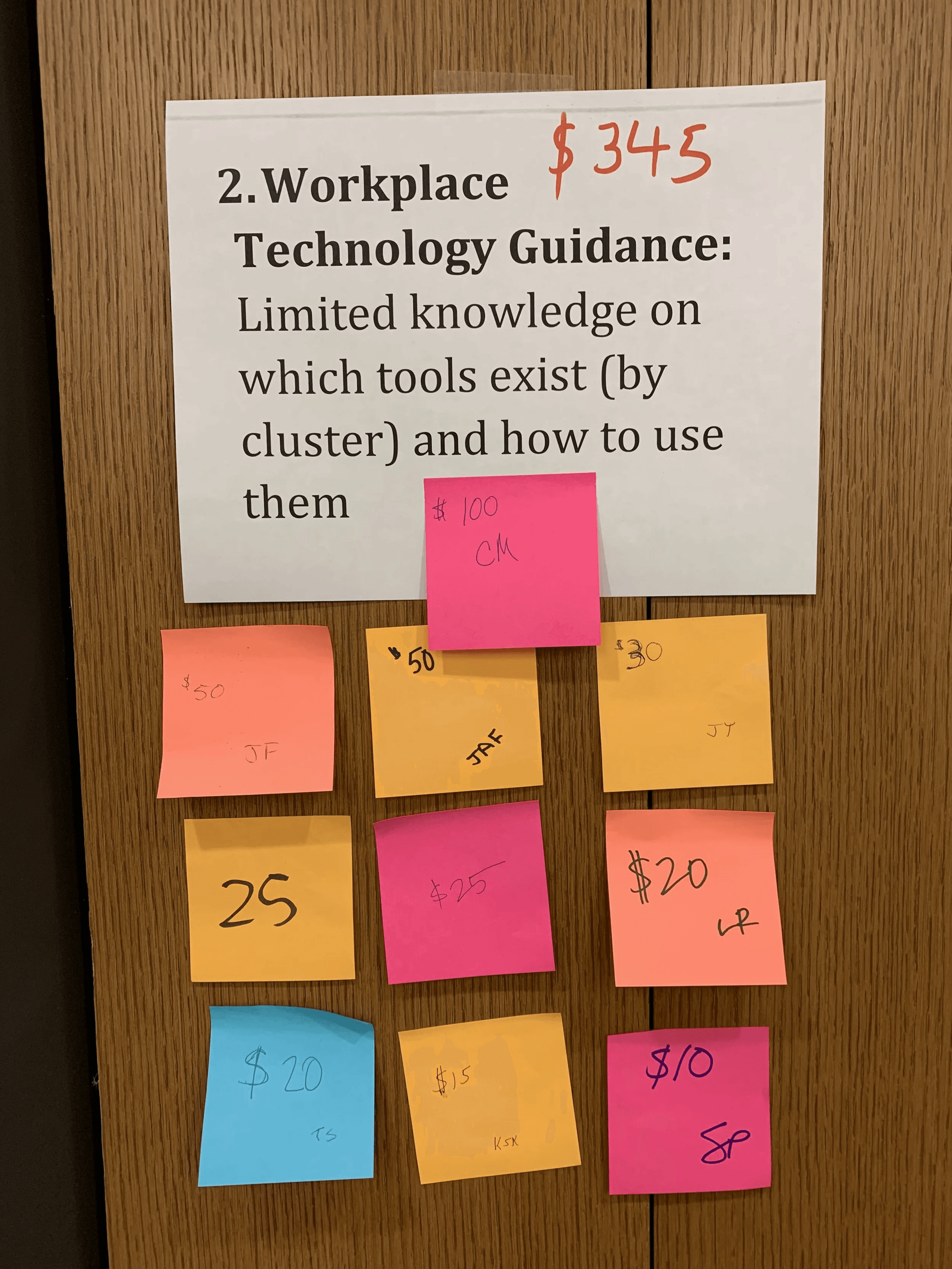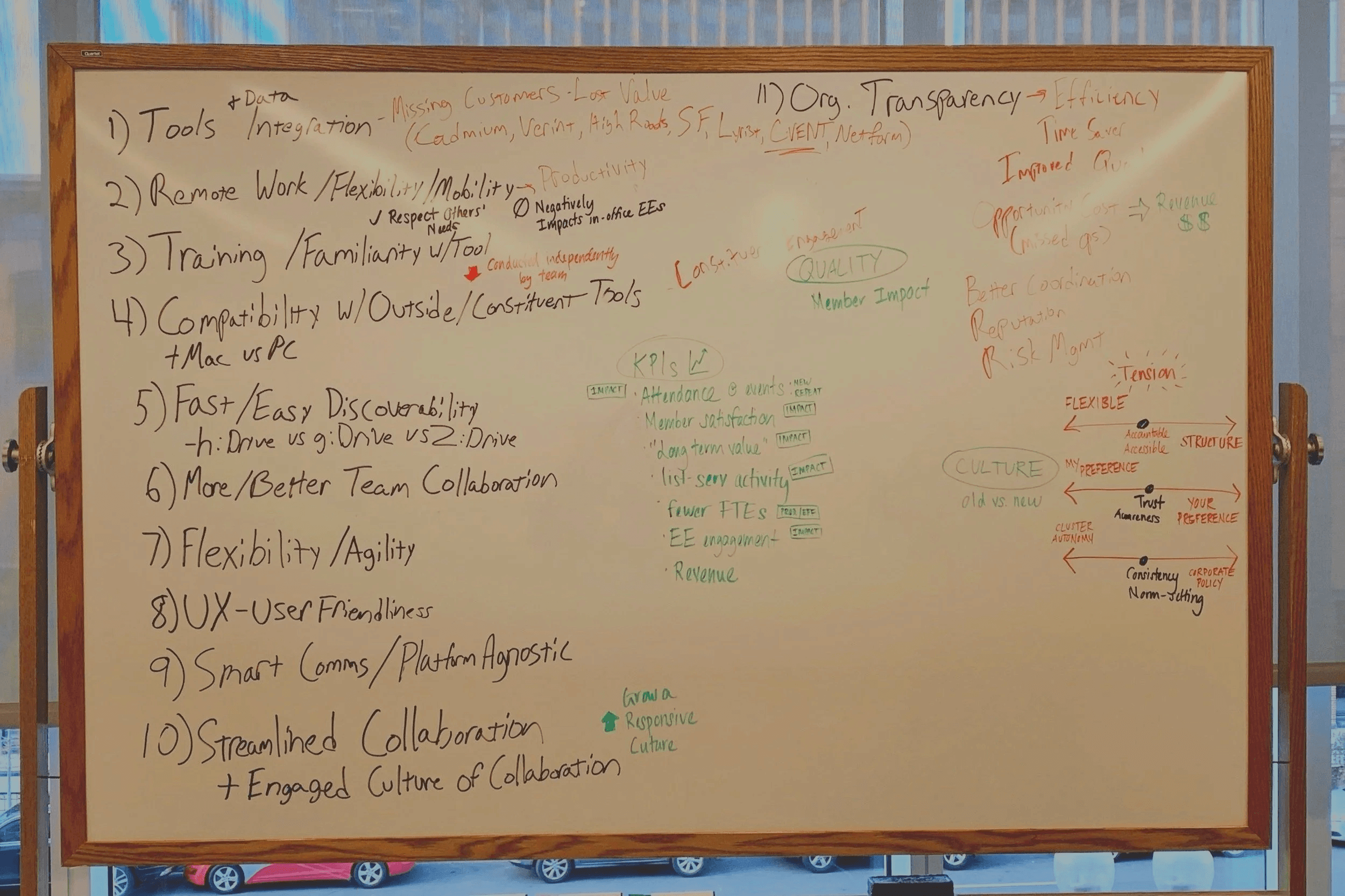 We also conducted two half day workshops with 30 participants - many not included in the interviews - to align on both the current state issues and a unified vision for the workplace of the future.
