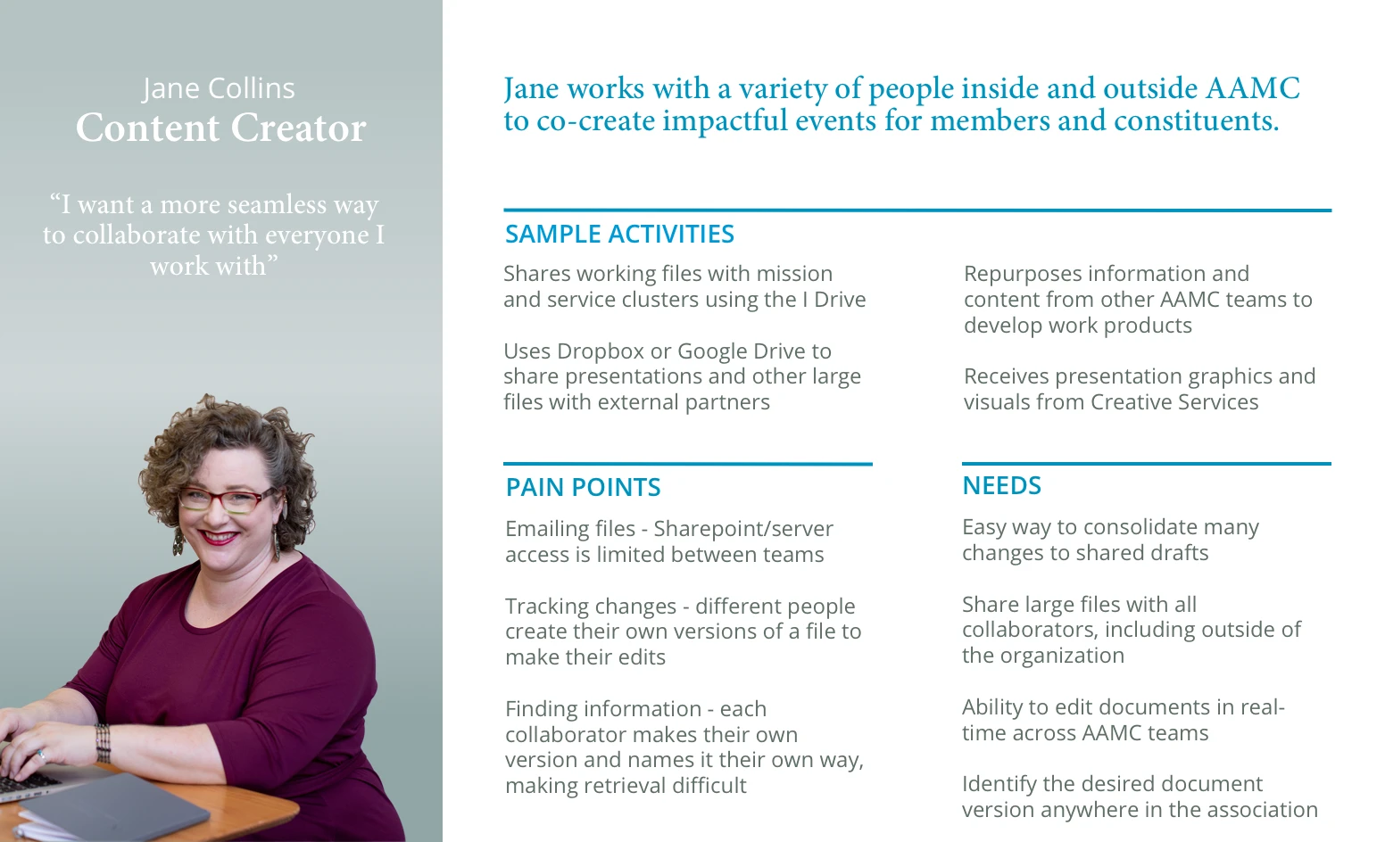 Jane, the Content Creator, represented the people who often share files and work with external partners.