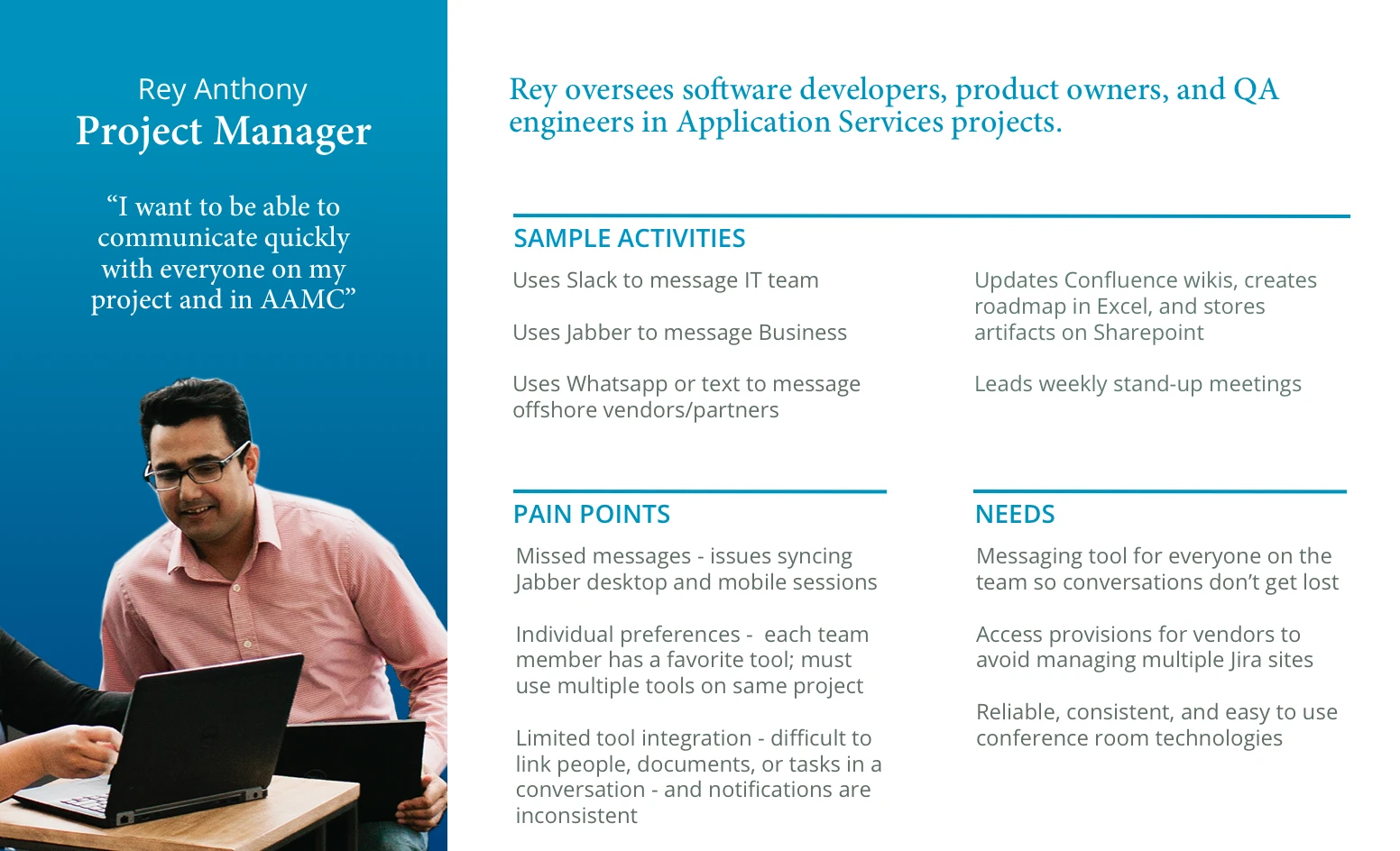 Rey, the Project Manager, is a persona representing the people who work cross-functionally in AAMC.